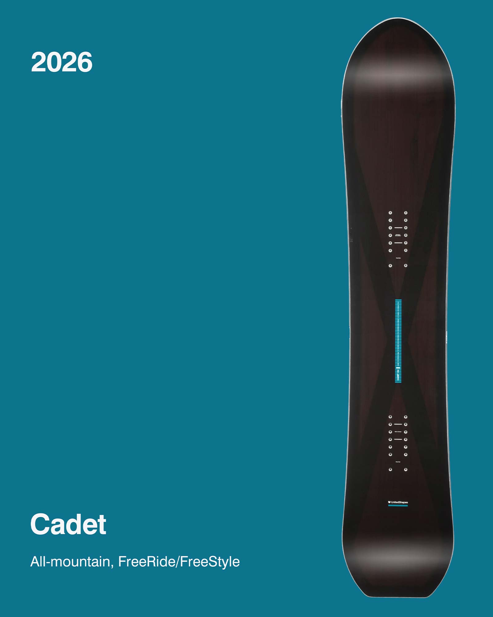 This timeless shape is reinvigorated with premium, sustainable materials and construction to meet the demands of modern riders in this modern era. The Cadet is a lively personality, catalyzing highly active riding: its deep sidecut enables efficient and effortless carving, and its traditional camber pairs with a gentle, early-rise nose to keep you composed, precise, agile and powerful. This board inspires confidence across all terrain. By blending a FreeRide nature with a Freestyle soul, the Cadet is a shape that loves to turn and is ready to soar on command.